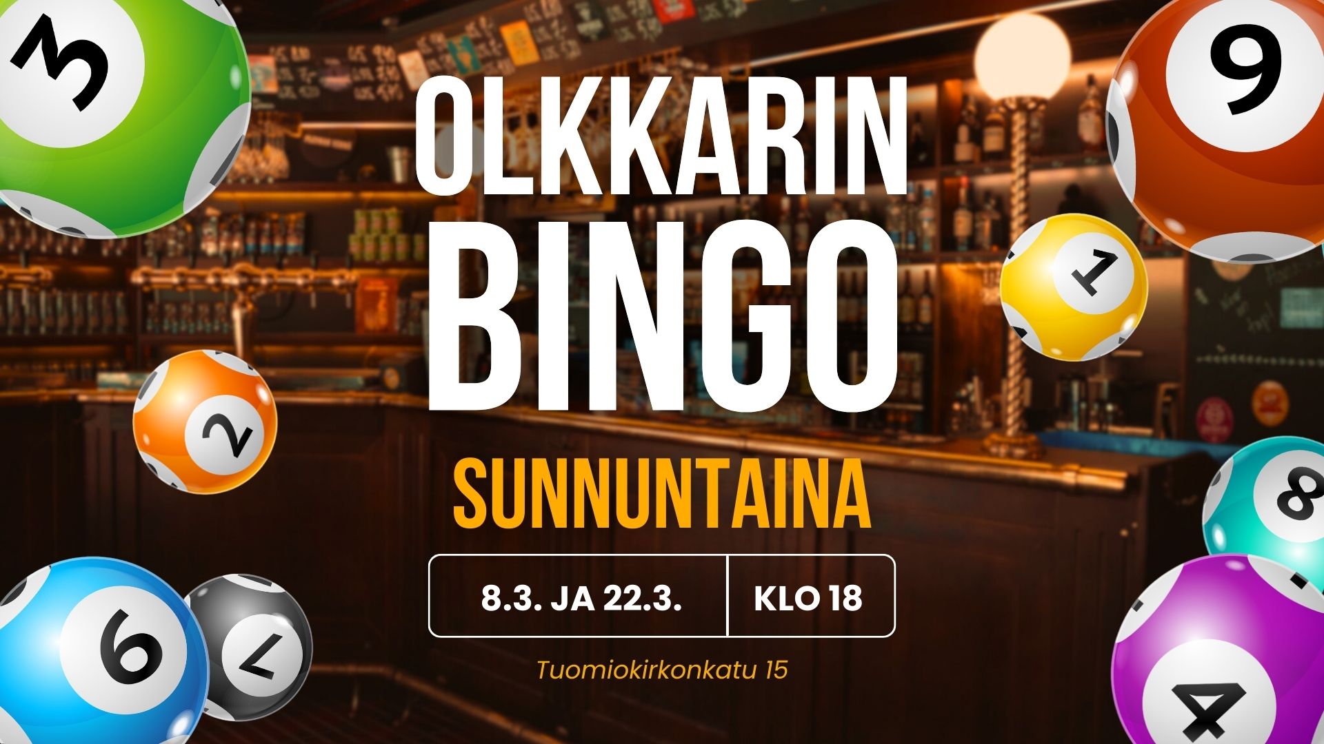 Olkkarilla taas bingoillaan, tällä kertaa sunnuntaina 8.3. & 22.3.2026 klo 18. Luvassa mahtavia palkintoja, muistathan merkata kalenteriin!