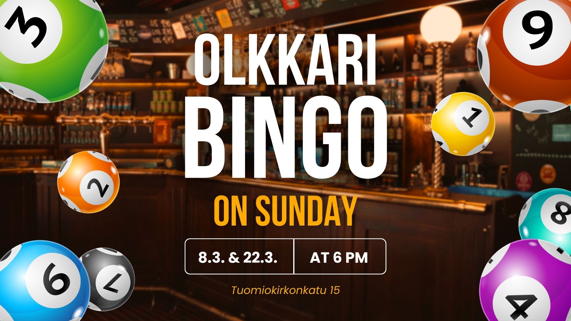 Olkkari bingo will start again, this time on Sunday 8.3. & 22.3.2026 at 6 p.m. There will