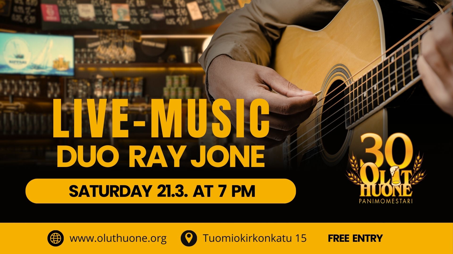 Live music at Oluthuone on 21 March starting at 7 pm by Duo Ray Jone. Welcome! Free